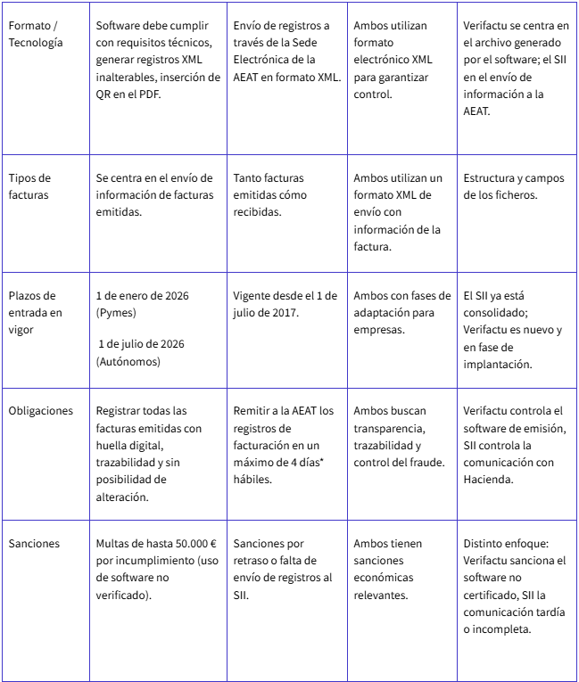 En conclusión, tanto Verifactu como el SII pretenden facilitar la facturación y hacer más sencillas y transparentes las operaciones comerciales. No obstante, cada sistema se adapta a las necesidades de distintas categorías de contribuyentes.